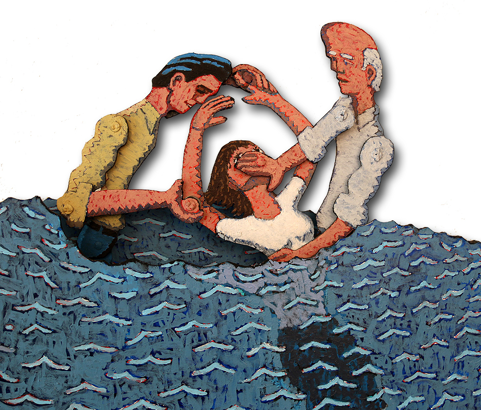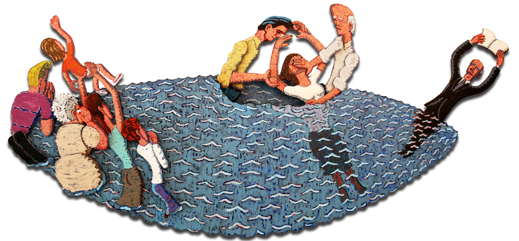 Outdoor Baptism 2020, 22” x 49 1/2” x 5” Kinetic Painting: Acrylics on wood and polycarbonate with mechanical and electrical components including audio