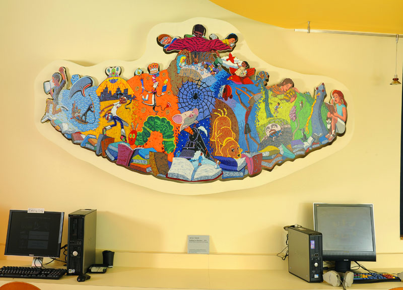 Please click here to see details. "Reading Is An Adventure" Acrylic and L.E.D.s on Wood 44" x 88" x 5 1/2" C. 2010
